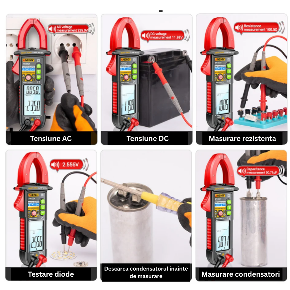 ANENG PN102+ combina masurarea precisa pana la 600A cu functii smart precum NCV si anunt vocal. Ideal pentru electricieni si lucrari rapide.